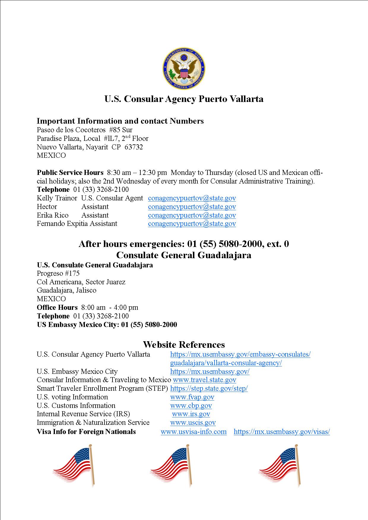 US Consulate Puerto Vallarta Contact Information By Expats in Vallarta Posted October 23, 2016 In Articles, Puerto Vallarta General, Safety US Consulate Puerto Vallarta Contact Information2016-10-232016-10-23https://expatsinvallarta.com/wp-content/uploads/2019/05/logo.pngExPats in Vallartahttps://expatsinvallarta.com/wp-content/uploads/2019/05/logo.png200px200px 0 Expats in Vallarta Recent PostsVavada Casino Polska – kasyno online 2026 – recenzja, bonusy, wskazowkiYüksek Limitli Blackjack Masaları Strateji Yaklaşım Ve Merhabetin RolüMarch 13 Expats Vallarta Dinner at Buenos Aires RestaurantMarch 10 Happy Hour Champions Sports Bar Expats Vallarta